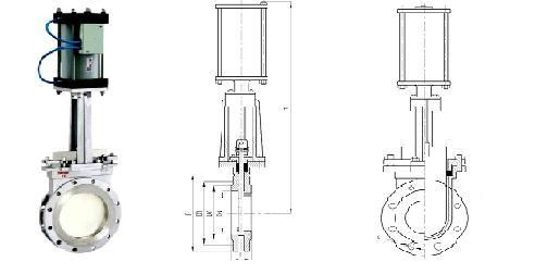 氣動(dòng)刀閘閥,氣動(dòng)刀閥的構(gòu)造圖及主要外形及連接尺寸(mm)